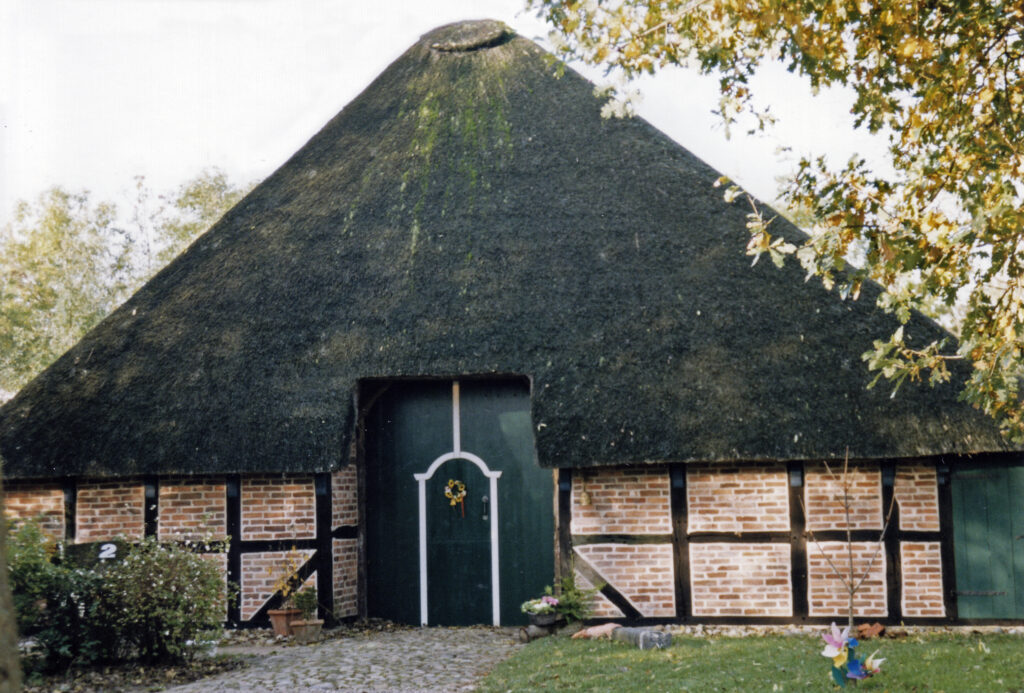 Bauernhaus mit längserschlossenem Wirtschaftsteil, Einfahrtstor zurückversetzt (Heckschur). Eines der ältesten Bauernhäuser Stapelholms (Datierung durch Dendrochronologie). Vom originalen Kerngerüst aus sieben Gebinden ist die nördliche Ständerreihe noch erhalten.