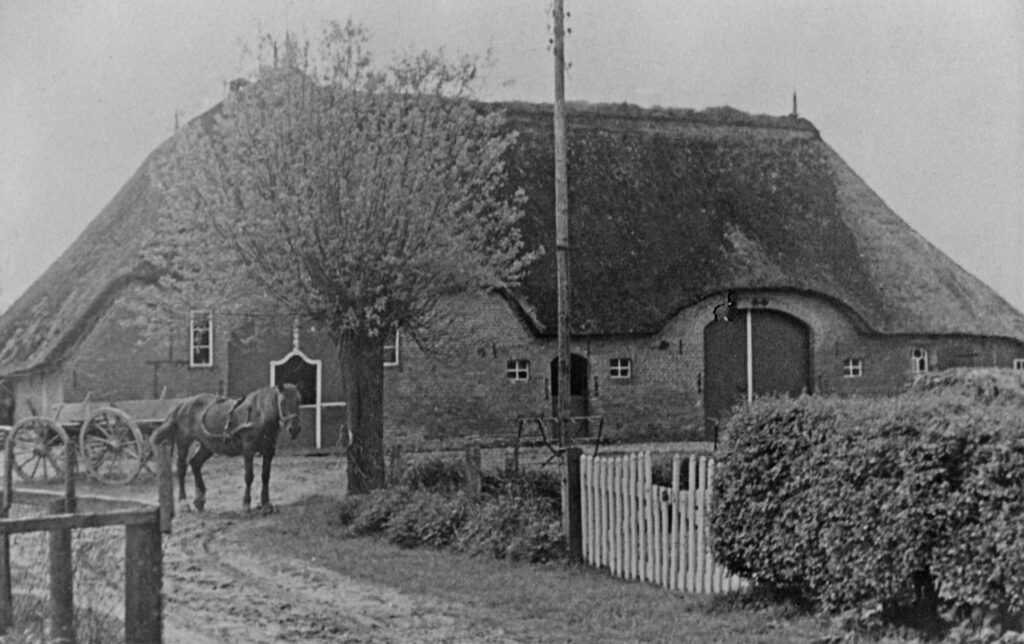 Ein nördlicher Vertreter eines Fachhallen-Bauernhauses mit Grootdör, dahinter liegender Loodiele mit Halbwalmgiebel und Eulenloch.