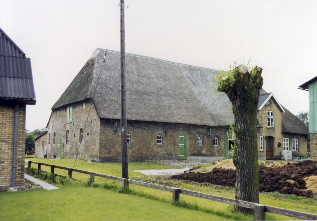 Eine eigene Variante des Querdielenhauses stellt das kürzlich bemerkenswert von Grund auf sanierte Anwesen im Ortszentrum am Schulring dar, das 2019 mit dem Stapelholmer Baukulturpreis ausgezeichnet wurde. Eine Dorfkarte aus dem Jahr 1863 bildet die Flurlage des ehemaligen Bauernhauses mit ausgebautem Viehstall als Wirtschaftstrakt ab. Der langgezogene Gelbsteinbau wurde unüblich für die Region in Nord-Süd-Richtung erstellt, um das Grundstück besser auszunutzen. Der seit 2017 neue Besitzer der Hofstelle hat weder Mühen noch Kosten gescheut, das gesamte denkmalgeschützte Hofensemble mit ausgesprochener Liebe zum Detail original in Stand zu setzen. Hier war pure Leidenschaft und große Freude am Werk bei allen, die daran Anteil hatten, um ein innen wie außen besonderes Prachtstück wiederzubeleben – eine wahre Freude, auch für Denkmalpfleger.
