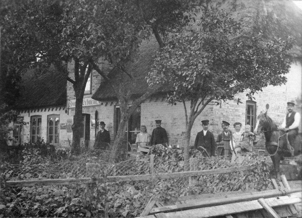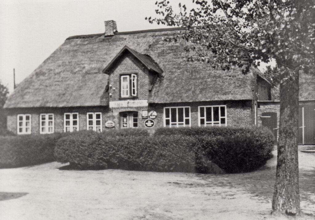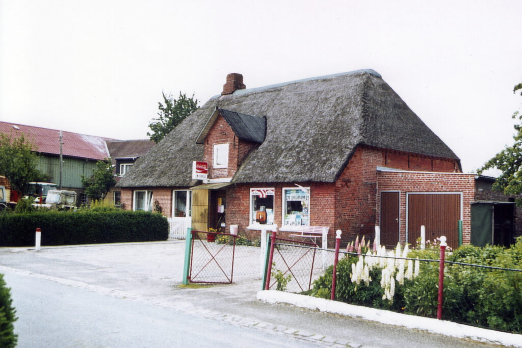 frühere Verwendung: Rechte Seite: Kaufmannsladen seit der Erbauung bis Mitte der 1980er Jahre. Linke Seite: Wohnfläche für die Ladeninhaber.